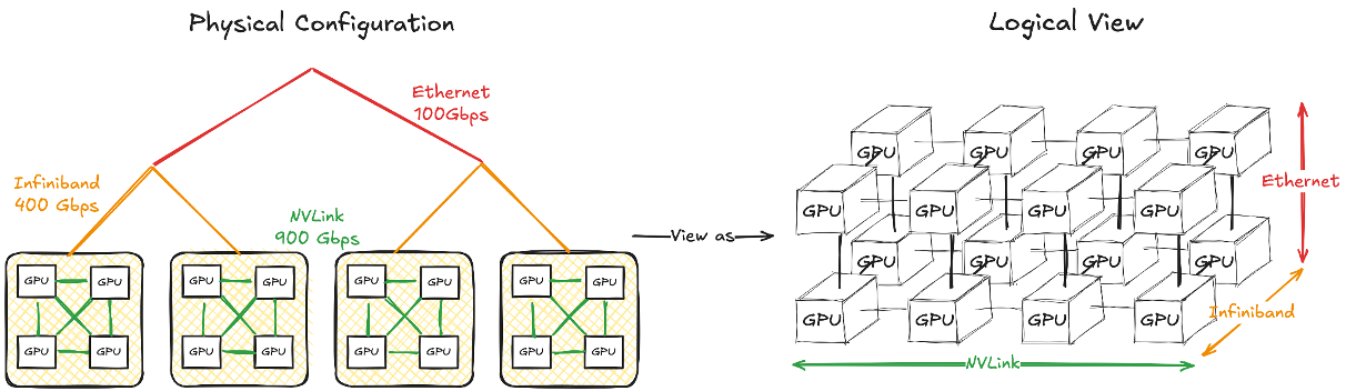 Mapping the GPU network hierarchy into a N-dimension device mesh